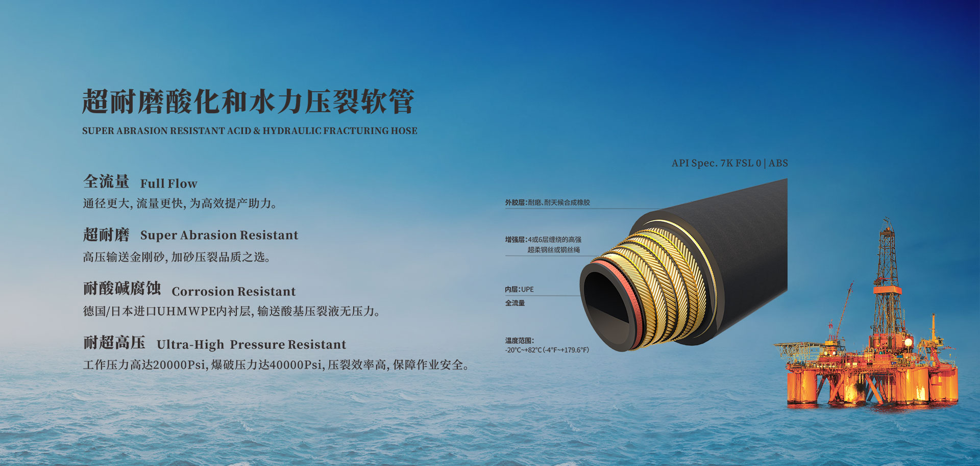 自主研發(fā)完井作業(yè)中的酸化壓裂、加砂壓裂、水力壓裂管線,在高壓下輸送水基、油基、泡沫、酸基等壓裂液